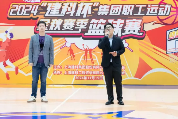 徐文為活動致辭,他充分肯定了本次籃球賽的精心組織,并特別向所有參賽隊員尤其是從全國各地遠道而來的隊員們表達了感謝。他希望全體參賽同事在比賽中盡情揮灑建科人的激情與活力,讓籃球這項運動不僅成為鍛煉體魄、增強體能的有效途徑,更成為促進團隊間緊密合作、深化默契的橋梁,共同為集團各項業務的蓬勃發展注入強勁動力。
