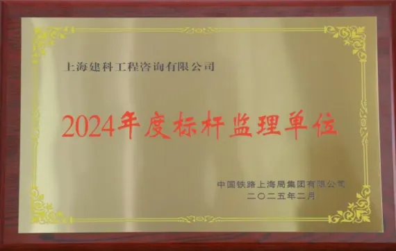 會上宣讀了2024年度中國鐵路上海局集團“建功‘十四五’、奮進新征程”鐵路建設勞動競賽和標準化管理評比表彰決定,上海建科工程咨詢有限公司獲評“2024年度標桿監理單位”稱號。